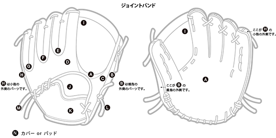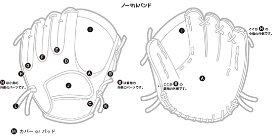 芯の硬さ(硬く・普通・軟く)グラブを使い込んだ状態で、芯の存在感を残したい場合は「硬く」を、革と同時に芯も馴染ませたい場合は「普通」を、全体に軟らかさをお求めの場合は「軟らかく」をお薦めします。
