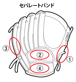 捕球面土手部のヘリ革を二重縫製することにより、革補強として活用する製法です。